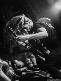 Commençons donc avec ce quintette bordelais qui se produit devant un Divan du Monde plein à craquer (compte tenu que le premier étage est réservé au catering) pour un set de 30 minutes. Il n’en faut pas plus pour chauffer tranquillement la foule et exciter les quelques foufous venus en découdre dans le pit. Les têtes headbangent gentiment dans la fosse alors que sur scène ça bouge un peu plus. Bien que le son ne soit pas au mieux et que les lights soient clairement pourries (encore des ingés lumières qui sont payés à rien faire, ou en tout cas mal faire), le groupe se dépense sans compter et insuffle sa rage parmi les rangs de têtes à cheveux longs. Pour conclure leur set, le chanteur demande au public, qui n’attendait que ça, un bon braveheart, rien de tel pour se mettre en jambes ! Bonne entrée en matière donc qui augure du meilleur pour la suite.