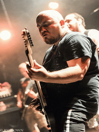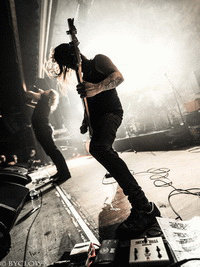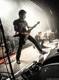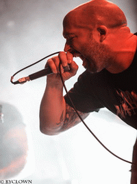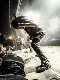 Arrivée sous les cris de joie (et ça se comprend) des costauds de BENIGHTED qui font décidément de plus en plus parler d’eux. Après une prestation plus que remarquée au Hellfest 2012 devant une tente pleine à craquer, ces furieux reviennent mettre le couvert pour le plus grand plaisir de leurs fans qui sont légion ce soir dans la salle. Avec ces mecs, on passe un, voire deux caps au-dessus niveau professionnalisme. Couplant un jeu de scène ultra dynamique (le plus dynamique de la soirée) avec un son / lumière pas dégueulasse du tout, la violence commence dès les premières notes du premier morceau, connu par les fans et repris par eux. Il est incroyable de voir comme la joie évidente des musiciens est communicative, jouissive, contagieuse même ! Les premiers slammeurs de la soirée commencent à monter sur scène pour ajouter au bordel ambiant sous les encouragements du chanteur qui leur tend une main amicale afin de les aider à accomplir leur besogne. Le bassiste, véritable boule de nerf et bête de scène, se tortille dans tous les sens tels un démon pour nous donner ce qu’il y a de mieux et il est vrai que, rien qu’à le voir, on en viendrait à aimer ce type de musique (là je parle pour ceux qui auraient l’audace de ne pas l’aimer sans la connaître), ce qui d’ailleurs, en cette place il y a quelques mois, me rappelle la prestation époustouflante de Trepalium pour la tournée de la Klonosphere. Pour conclure sur l’épisode BENIGHTED, c’est à mon sens, et de très loin, la meilleure performance scénique que j’ai pu voir de la soirée, et je pense que ceux qui ont participé au massacre sur la dernière chanson ne pourront que confirmer mes dires !
