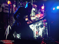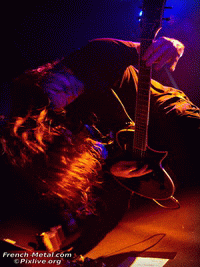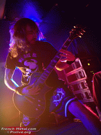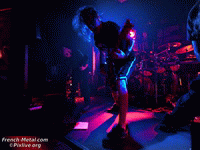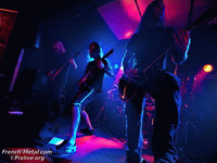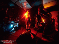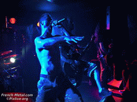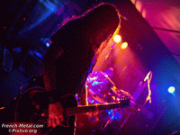 Oui, il fait une chaleur à en crever. Parce que la salle est petite et qu’on est confiné, parce que les riffs et rythmes d’ABSURDITY sont diaboliques et enflammants, parce que public et groupe sont en harmonie, en osmose totale. Il y a de la vie dans ce concert, de l’éclate, de la rage… On oublie tout, on se déconnecte du monde et putain, on profite à fond ! Le groupe a l’air d’apprécier, ça tombe bien, le public aussi. Le chanteur est une vraie pile électrique. Il ne tient pas en place, il est obligé de courir partout, de faire les cent pas, de sauter… et mine de rien, ça met de l’ambiance. Les deux petits nouveaux, à savoir Damien le gratteux et Matt le bassiste, apportent réellement de la fraîcheur, de la modernité. Il y a une grande complicité entre ces deux-là et ils ne s’en cachent pas, bien au contraire !
