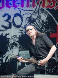 C’est au tour maintenant d’un groupe qui se fait rare sur scène : CANDLEMASS. Le groupe, légende du doom, est là pour montrer de quoi il est capable. Personnellement ce n’est vraiment pas ma tasse de thé, c’est donc plutôt avec curiosité que j’assiste à leur prestation. Me voilà rassurée dès le début du set, les morceaux ne sont pas du tout assommants mais plutôt énergiques, mais peut-être que Mats Levén au chant y est pour quelque chose aussi. L’ambiance est moins joyeuse que pour THE ANSWER mais le groupe compte pas mal de fans et ils répondent avec enthousiasme. On peut regretter un peu le manque de communication avec le public, mais ça ne semble pas leur porter préjudice. Les riffs sont lourds et l’ambiance l'est aussi mais elle colle parfaitement au groupe qui finira sa prestation avec "Solitude", considéré par les amateurs de doom comme une référence dans le genre.