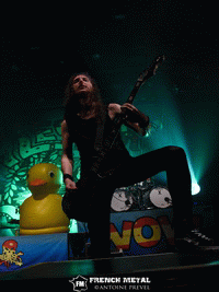 Depuis plus d’une douzaine d’années, ces pirates écossais nous distillent un metal festif qui ne surprend plus, on doit bien se l’avouer, mais qui fait toujours mouche, les derniers disques sont plus ou moins réussis mais il y a toujours ce petit trésor sur chaque album qui donne lieu au final à une setlist ultra efficace, maîtrisée d’un bout à l’autre selon les critères propres à ALESTORM, avec des échanges multiples avec le public, des aboiements, un canard géant sur scène (les gars d’Ultra Vomit doivent être jaloux !), un croco sur le backdrop, des levers de jambes de Chris Bowes dévoilant non pas ce qui se cache sous le kilt mais ses belles sandales, bref encore loin des standards du genre ! La cérémonie continue avec cette belle formule de politesse : " Fuck you and you and you and you and all of you", ce qui ne donne pas d’autres choix au public que de scander le nom du groupe et qui se fait rembarrer ("I don’t want to embarass you but that’s pronounced ALESTORM…"). On continue avec cette débauche scénique, on sait bien que les pirates montent sur le pont pour s’amuser, qu’il n’y a rien de sérieux dans tout ça et ça se voit très vite de par l’attitude des membres du groupe et la bonne ambiance qu’ils transmettent. Avec "1741 (The Battle Of Cartagena)", ses samples et ses growls, on se met bien en chauffe pour le moment tant attendu : la reprise de "Hangover" et là, ça devient fou, ils vont nous faire aimer Taïo Cruz ces cons ! Ou pas… Mais il faut bien avouer que cette reprise est géniale, le groupe a pris le large avec cette reprise bien arrangée à sa façon et qui lui va comme un gant, c’est d'ailleurs assez marrant de voir que le point culminant de ce set sera une reprise et pas une compo qui leur est propre ! Et pour cette reprise, ils sont accompagnés par le guitar tech et "Beef Man" applaudi comme un héros lorsqu’il nous montre comment faire un double cul-sec simultané avant de prendre le micro et de balancer quelques lignes rapées. Encore un gag comme ils le font si bien !