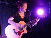 Après une tournée avec le projet The Gentle Storm, c’est seule et avec une guitare acoustique qu’Anneke Van Giersbergen rentre sur scène. Que dire de cette artiste ? Pour commencer que cette femme possède un charme fou. Un sourire ravageur et communicatif qui ne la quitte jamais. Une sympathie qui n’est pas feinte et un grand humour, légèrement enfantin. Si certains artistes sont plutôt réservés, Anneke, elle, se livre totalement et en toute simplicité. Presque chaque titre joué est précédé d’une anecdote, une looooongue anecdote. Avant d’entamer "My Mother Said", c’est avec un naturel déconcertant (on a presque l’impression d’être à une soirée entre amis), qu’Anneke nous décrit sa relation avec sa mère, comment elle a vécu l’adolescence, comment elle a été en rébellion parfois et surtout comment elle comprend à présent ce que sa mère lui disait en devenant à son tour parent. Plus tard elle nous parle de son ami Devin Townsend, ou encore de son mari et de son fils, mais toujours avec bienveillance et drôlerie. Voilà pour la personnalité d’Anneke Van Giersbergen. Quant à la voix, attention âmes sensibles s’abstenir ! Il y a Lisa Gerrard de Dead Can Dance, cet être mystique qui a été touchée par la grâce divine, et il y a Anneke, un ange sur le berceau de laquelle les fées se sont penchées. Peu sont celles qui peuvent rivaliser avec cette voix délicate et cristalline. Dans son répertoire, on trouve un vaste choix de titres. Du The Gathering bien entendu avec "Saturnine", "Locked Away", mais aussi "Ih Ah !" de son compère Devin Townsend, des reprises surprenantes telles que "Broken Wings" de Mr. Mister et même Dolly Parton avec "Jolene" en rappel. Anneke nous offre un moment de pure douceur. La qualité de sa prestation et l’interaction avec le public, enchantent les spectateurs qui sont pendus à ses lèvres rouges. C’est avec une petite pointe de tristesse que nous la quittons.