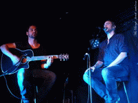 KLONE arrive sur la toute petite scène de la péniche de Lille et s’installe sur des tabourets hauts, façon cabaret. Une voix, deux guitares électro-acoustiques, et un accordéon (ainsi que sur deux ou trois titres tout au plus, un tom en supplément pour une rythmique très épurée et aussi quelques parties de synthé). Pour l’occasion, le groupe se retrouve en quatuor avec la participation d’Armelle Dousset alias Ellemra Douce-ment (accordéon / percu / synthé). A priori, cela risque de ne pas être très puissant. Et puis, et puis… les premières notes, les premiers mots… et c’est un enchantement. La voix de Yann Ligner est douce et pleine d’émotion. La réorchestration des morceaux en version acoustique est magnifique. Les guitares électro apportent ce petit quelque chose de merveilleusement poétique et mélancolique qui pour peu ferait monter les larmes. On est loin des balades doucereuses, et KLONE ne perd rien de son intensité sans les guitares électriques. Au contraire, grâce aux micros placés devant les cordes, les notes claquent et résonnent profondément. Quant à l’accordéon, cet instrument si mal aimé à cause de sa connotation musette, il est utilisé avec tellement de subtilité qu’il magnifie l’ensemble. On découvre le pouvoir émotionnel de cet instrument tant il est joué avec intelligence et parcimonie. Les morceaux passent à une vitesse folle. On aurait aimé que le temps s’arrête pour en profiter encore, juste quelques minutes supplémentaires à frissonner.