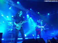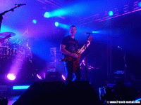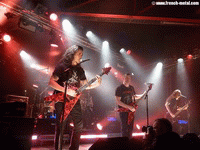 Ouch ! Le son est puissant, fort et équilibré, sauf en ce qui concerne le micro principal tenu par Jeff Waters, un peu sous-mixé. Le leader est devenu chanteur à plein temps depuis que Dave Padden est parti s'occuper de sa famille. Et il nous manque. Car, disons tout de suite, si Jeff est un chanteur correct, il n'est pas excellent, voire tout juste "bon". Bien à l'abri en studio, il montre très vite ses limites durant ce concert. Ce qui ne nous empêche pas d'aimer ce concert, car cette petite ombre au tableau ne saurait gâcher la performance musicale des musiciens, l'énergie et la puissance envoyées par le groupe canadien. Jeff est à fond !!! Tout sourire, bougeant sans cesse, sautillant à la Angus Young, jouant avec le public, prenant des poses avec sa guitare durant les solos, faisant participer le public, il s'impose direct comme le géant de ce soir. Entre chaque morceau, Jeff prend le temps de déconner, de raconter des blagues avec son humour typique ainsi que de nombreuses anecdotes au sujet des chansons à venir. Cool, nonchalant, parlant infatigablement comme s'il était avec des potes dans un bar (il cause tellement que le groupe, qui a pourtant joué durant presque 1h50, aurait facilement pu interpréter deux voir trois autres titres, c'est dire !), on apprend à connaître ANNIHILATOR mené par Jeff, un groupe amical et convivial qui, lorsque le moment est venu, écrase tout sur son passage. Bienvenu dans un "Fun Palace" en compagnie du maître de cérémonie Jeff Waters. Les morceaux issus du dernier album sont joués en début de set (un martial "Snap", un groovy "Suicide Society", un énorme "Creepin' Again", ces deux derniers nous confirmant que Jeff n'est pas à la hauteur vocalement) et voient Jeff dégoupiller la première blague de la soirée ("A propos de nouvel album, qui aime le nouveau Iron Maiden ? Qui aime le nouveau Slayer ? C'est impossible de ne pas l'aimer. Et, hum, qui aime le nouveau Annihilator ? Oui, bon, allez, ce n'est pas grave si vous ne l'aimez pas...").