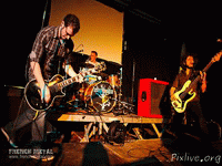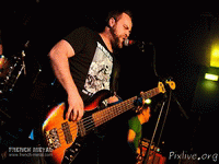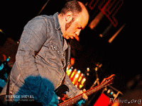 Premiers arrivés, FUZZPHORUS qui jouera trois quarts d'heure environ. Ce trio à deux voix nous propose ses compos à la fois entraînantes et pesantes, dans le sens où le rythme varie de manière répétitive. Ceci dit c'est aussi un trait caractéristique de ce style.