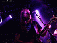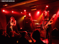 Voilà BEASTMAKER, un tout jeune groupe (à peine deux ans d’existence et moins d’une dizaine de concerts à leur actif) américain venant à Paris pour la première fois dans une salle relativement grande par rapport à sa popularité, avec nonobstant plusieurs spectateurs déjà présents. Un bassiste, un chanteur / guitariste et un batteur assez bons, qui nous offrirent un spectacle, disons-le, quelque peu monotone. Bien campés sur leurs pieds pendant des morceaux sonnant un peu longuets, de brefs échanges pour être d’accord sur celui à suivre – très peu discrets et à l’utilité toute relative quand vint ce moment gênant où ils se trompèrent de chanson… On peut également reprocher une ambiance finalement assez peu adaptée à un concert de doom metal ; entre la luminosité bien que lointaine assez intense provenant du pub O’Sullivan, les néons fluo du bar à quelques pas de la scène et l’éclairage alternant rouge et bleu luminescent… Tout cela manquait quelque peu de… de deuil ? D’ombre ? Quoi qu’il en soit, BLOOD CEREMONY, hélas, malgré de l’amélioration, ne corrigera pas totalement ce souci de manque d’ambiance propice.