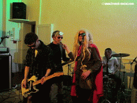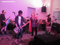 C’est au tour d’HENRI4DEATH de continuer d’animer la seconde partie de la soirée, c’est la seconde fois que je vois ce groupe, qui lors de la première fois m’avait fait une forte impression. La première chose qui m’a marqué c’est que tous les membres du groupe étaient déguisés, cela donnait esprit bien déjanté et surtout rock 'n' roll. Je retrouve là le style qui m’avait bien plu, un mélange de punk et de grunge, l’ajout d’une seconde guitare par rapport à la première fois rajoutait de la profondeur aux morceaux. Le style de Déa (chanteuse du groupe) est toujours aussi efficace avec son dynamisme sur scène et sa voix bien torturée qui rentre bien en adéquation avec le reste de la formation. Le membre d’HENRI4DEATH qui m’a le plus impressionné est Fred (guitariste, chœurs) par son style très rock 'n' roll, il n’a pas hésité à se mêler au public ou bien se frapper la tête avec sa guitare. Une démonstration qu’on aimerait voir plus souvent sur scène. Leur punk / grunge est toujours aussi bon musicalement, c’est toujours la baffe et du point de vus scénique, la formation s’est améliorée, le public a aussi réclamé un autre morceau en plus malgré qu’on aurait aimé en avoir davantage. Merci donc à tous les membres des HENRI4DEATH pour cet agréable moment.