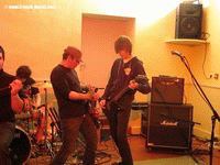Il est maintenant temps de changer de registre pour se plonger dans le metal de BULWERIA BIFAX. La musique du groupe débute et là on remarque directement un changement radical de style dans un ton plus brutal et violent. Malgré que musicalement on soit dans un domaine bien plus sombre, le groupe, grâce à son dynamisme, a su garder la bonne ambiance de la soirée qui avait été déjà instaurée par les autres groupes. Le chanteur n’hésitait pas à monter sur un caisson pour se mettre en hauteur par rapport au public, on aurait dit un orateur qui parlait à son auditorium. Il est vrai que sa pêche démontrait un vrai plaisir à faire de la musique, un style scénique qui a le mérite d’être souligné. Les autres membres sont impressionnants de par leur technique et leur jeu de scène, c’est bien joué, les riffs, les solos et le tempo sont parfaitement maîtrisés. Malgré qu’on fut confrontés au seul groupe de metal de la soirée, la formation a su tout de même imposer son style qui était plus brutal et rentre-dedans. Pour finir, nous avons eu droit à un petit délire où BULWERIA BIFAX a invité des membres du public et d’autres groupes à venir jouer sur scène ou bien pour pousser la chansonnette. Une très bonne idée qui a permis de finir la soirée dans la joie et la bonne humeur.