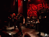 Les lumières s'éteignent et dès l'entrée sur scène de CANNIBAL CORPSE, le public se déchaîne complètement, cris, growls et cornes envahissent la salle.