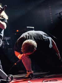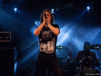 Le chanteur passe d'une gueulante à une voix clean sans trop de soucis. Le contact avec le public n'est pas inexistant mais pas énorme non plus.