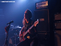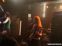 Les deux premiers groupes ont déjà bien chauffé la salle. Le public est excité et tout ruisselant de sueur, la bière coule à flot, et les pieds collent au sol. Ça paraîtrait presque banal pour une soirée rock metal, mais ne nous mentons pas : le public, de très forte affluance masculine, n'attend qu'une chose : l'arrivée des CRUCIFIED BARBARA. Et... les voilà !! Elles entrent sur scène vers 22h30, acclamées par un public plus que bouillant. C'est parti pour plus d'une heure de bon hard rock, avec le titre "In the Red", suivi de "The Crucifier" qui va définitivement enflammer le public. Quelle joie de les voir enfin ! Cette maîtrise de la présence scénique, un jeu parfait, un chant juste et puissant. Comment ne pas succomber ?! Des titres issus plus spécialement des deux derniers albums, "In The Red" et "The Midnight Chase" J'ai apprécié les interprétations qui n'ont pas été copiées-collées des albums studio. J'ai noté des variantes comme on les aime en live, notamment sur le titre "Count Me In" qui est de base une ballade, joué en version plus rapide et pop rock, tandis que pour le titre "Jennyfer", elles ont sorties les guitares acoustiques. Pas le temps de ramollir l'ambiance, les filles réenchaînent sur du gros rock qui fait sauter les plus coincés, pour terminer leur set avec "I Sell My Kids For Rock'N'Roll" du dernier album, aux riffs super endiablés.