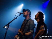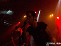 Le nouveau batteur Thibault je l'ai vu prendre son pied et avoir la banane pendant tout le set comme j'en ai rarement vu. En plus il cogne juste, pas comme un bourrin mais c'est précis et sans bavure. Ils ont trouvé le bon remplaçant de Niko "Thunder" on dirait ! Fred Duquesne, lui, on le connaît déjà bien notamment avec Watcha ou Empyr mais aussi comme producteur de pas mal de groupes dont BUKOWSKI justement. C'est maintenant avec une six cordes qu'il a rejoint le groupe, donc sans grosse surprise c'est du très bon, simple et efficace ! Le duo qu'il créé avec Mathieu est imposant, plus lourd que par le passé. Ce qui permet d'ailleurs à Mathieu de poser la guitare quelques instants s'il veut se concentrer sur le chant, il est d'ailleurs bien en forme pour nous jouer les morceaux de ce nouvel album où le chant est plus poussé qu'auparavant. Et Julien, c'est toujours aussi fun de le voir, le look a un peu changé mais pas le gars, donc toujours le mot pour déconner, tout le temps en train de désigner le public par "ma gueule" ou par "buveurs de cidre" (on n'est pas en Normandie pour rien !), avec quelques autres conneries au passage. Mais c'est aussi un sacré bassiste qui est encore une fois toujours aussi efficace, à lui seul c'est un spectacle ! Concernant les morceaux du nouvel album, je dois avouer que j'avais volontairement assez peu écouté l'album hormis pour préparer l'interview. Je voulais découvrir en live, c'est clair que les morceaux sont bien différents de ce que le groupe nous a proposé avec les deux premiers albums. Mais c'est tout aussi bon si ce n'est meilleur, toujours aussi rock, puissant et électrique. On peut passer par des morceaux très rentre-dedans comme "Keep Your Head On" à des morceaux plus posés comme "Brothers Forever" ce qui rend vraiment le set plus varié et on apprécie les changements d'ambiance et de rythme pendant le concert. Un invité est venu accompagner Mathieu au chant sur "Car Crasher", c'est David, le chanteur des Normands de Noïd (un autre groupe qui monte sûrement), il est venu aussi sur la date du Divan du Monde deux jours avant d'ailleurs. Un bon moment supplémentaire que nous auront fait vivre les Parisiens. Bref que du bon pour ce concert, BUKOWSKI n'est pas près d'arrêter de grimper !
