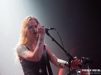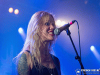 Les CRUCIFIED BARBARA montent assez rapidement sur scène, et sans temps de chauffe pour elles (nous on a déjà eu une heure de BUKOWSKI !) on entame avec le très bon "The Crucifier" qui débute aussi leur album "The Midnight Chase" qu'elles défendent ce soir. On enchaîne avec "Play Me Hard" et "Shut Your Mouth", ces Suédoises nous livrent du hard rock à l'ancienne de très bonne facture, des riffs dignes des plus grands, la voix éraillée et puissante de Mia qu'on ne s'attend pas forcément à entendre chez une femme et qui donne un atout supplémentaire au groupe. La maîtrise de sa voix lui donne aussi la possibilité de varier les tonalités, ce qui est vraiment un très gros plus, surtout qu'elle retranscrit aussi ces variations en live, tout comme ses talents de guitaristes. Chapeau bas ! Mia qui déclare d'ailleurs que le groupe a une relation spéciale, particulière avec la France, on ne va pas se plaindre si on peut revoir les CRUCIFIED BARBARA régulièrement ! Tout au long du set on passe d'un excellent moment de rock à un autre avec des morceaux qui sont tous très très bons, "Jennyfer" est un petit temps mort qui permet aussi de varier les plaisirs, on peut souffler un peu, mais force est de constater que même dans un registre mid-tempo, les Suédoises savent aussi ce qu'elles font. La transition avec l'excellent "Into The Fire" est d'autant plus flagrante car c'est sûrement un de leurs titres les plus heavy ! L'autre surprise c'est de voir Klara passer derrière le micro pour cette belle reprise de "Killed By Death" de Motörhead, si ça ne vous fout pas sur le cul c'est que rien ne vous surprendra jamais ! Parce qu'autant Mia c'est la chanteuse donc on connaît sa voix, autant là Klara c'est une grosse surprise ! La puissance qu'Ida tire de sa basse est aussi tout simplement énorme. Nicki est peut-être discrète derrière son kit mais vu sa frappe on ne risque pas de l'oublier elle non plus ! Toutes les quatre ne manquent d'ailleurs pas d'énergie sur scène et elles ont toute cette rage, cette envie de mettre le public sur les rotules, le but est atteint personellement ! Le final se fait avec les excellents "Sex Action" et "Everything We Need", tous les deux des hits des quatre Suédoises.