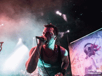 Le groupe attaque très fort avec "I, Reptile" en guise d'ouverture. Le concert s'annonce fort en décibels. Le public est maintenant dans son élément, ça commence à slammer dès les premiers morceaux et les pogos seront présents tout au long du set. Nous auront même le droit à un circle pit autour de la régie et de deux walls of death. Ils seront plus petits que celui du Hellfest mais dans une petite salle comme le Trabendo, ça fait toujours son petit effet.