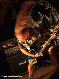Le cinquième et dernier groupe de la soirée : EVIL ONE. Inutile de les présenter également, ce groupe a eu un franc succès parmi le peu de public restant, à en juger par ceux qui reprenaient les paroles en chœur. Ce groupe est orignal avec un chanteur exceptionnel. Une musicalité thrash bien entraînante et un chant heavy pénétrant et juste. Des aigus à nous en faire couper le souffle, c’était impressionnant. Encore une fois un très bon groupe qui nous a offert un rappel comme il se doit ! C’est juste dommage que la salle était presque vide.