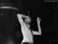 Arrivé à la bourre pour cause de taf, j’ai juste à temps voir les 4 derniers morceaux des pitbulls de L'ESPRIT DU CLAN. Avec "Révérence : Chapitre 2", les p’tits gars du 93 se sont taillés une bonne réputation dans la scène metal Française, réputation confirmé par des prestations scéniques musclées et dévastatrices. Fidèles à eux-mêmes, l’EDC est massif et imposant en live : leur metal-hardcore, certes pas des masses original, est très bien ficelé et plaît au public, à en juger par l’importance du pit. Un public à la moyenne d’âge très faible, qui prouve que la scène Française violente sensibilise aussi les jeunes, et que Pleymo et consort n’ont pas le monopole sur ce créneau….ceci dit en passant. Au final, les 2 vocalistes de l’EDC se confondent en remerciements en quittent la scène en vainqueur.