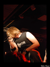 Il y règne une super ambiance, on peut dire que les deux premiers groupes ont déjà bien chauffé la salle, il s’agit du groupe SPLIT, groupe local, qui a enchaîné déjà pas mal de concerts. Bon style, un savant mélange de thrash metal, une petite pincée de mélodique, des textes bien construits en Anglais, un chant puissant mené par Adrien. Ils bossent en ce moment sur un CD qui tarde un peu à venir mais une chose est sûre, on va entendre parler d’eux…