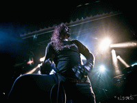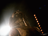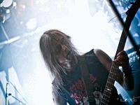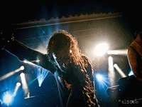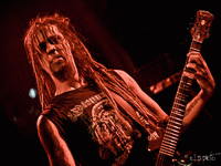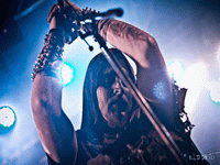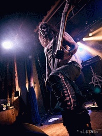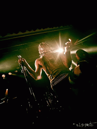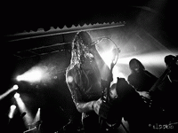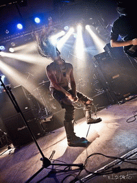 Oscillant entre violentes absences de prestance et intenses moments d’envoûtement, ce dernier, paré de ses plus belles et sanglantes scarifications (rajoutant, au-delà de l’aspect purement visuel, un degré d’intensité à la branlante immersion dont le quintette tente de se faire l’ambassadeur au travers de ses compositions, somme toute assez linéaires), enivré par les planches alors ouvertes à lui, ponctuera ses cris de démence par d’éparses accès de masochisme. Se frappant régulièrement, comme profondément transi par la prestation de son ensemble, marquant de son attitude, la densité et les temps forts de certains riffs...