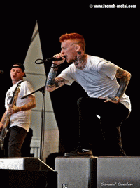 Pas le temps de faire le concert en entier qu'il faut partir pour le concert de GALLOWS. Le célèbre hardcore / punk violent des Anglais est très attendu. Les mecs nous expliquent qu'ils ont joué au Danemark à 2h du matin et ils sont là sur scène. Beaucoup de monde dans la fosse photo, je tente quelques shoots depuis le "pit", résultat : une bonne frayeur et un bon coup de genou dans les côtes (putain mais je suis grand pourtant).