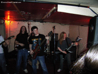 Enfin un vrai concert de metal dans une vraie cave qui sent les pieds ! Quatre groupes étaient annoncés ce soir, mais finalement nous n’eurent le droit qu’à trois. The 13th Note est un pub à l’écart de centre ville, que Peter et moi ne connaissions pas, et quand nous arrivâmes sur les lieux peu avant le début du concert, rien n’était installé. Chiotte alors, on s’était gourré de date !!! Et bien non, car les lieux du concert étaient cachés sous terre. Le temps de boire une pinte, et nos pas nous ont porté en bas des marches.