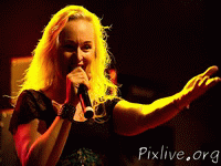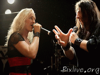 Il est l'heure a présent de laisser la place à la charmante Liv Kristine de LEAVES' EYES. J'espère à ce moment-là que les balances seront meilleures mais mauvaise surprise, à son arrivée, sa voix est quasiment inaudible. Il faudra bien trois morceaux pour corriger le tir. Le set passe finalement vite pour moi qui suis friand du genre. Certains dans la salle ne pensaient pas la même chose mais soit, Liv et ses acolytes nous ont offert un set de bonne facture. Passage dans notre pays oblige, la reprise de "To France" avec l'intro jouée à la mandoline. Dommage cependant que la cornemuse soit samplée quand on connaît la puissance d’un tel engin en live.