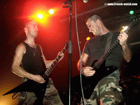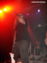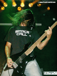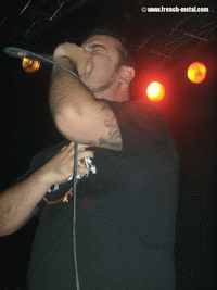 Le groupe qui va suivre va semer un véritable chaos sur la scène de la MJC Ô Totem !! Place maintenant aux Lyonnais de BOUNTY HUNTER, groupe de death / grindcore avec des membres de Deathawaits, dont Boris, et Flo au chant. Tous ont des maquillages différents, notamment Florian grimé à la Capitaine Spaulding, Mike, également au chant, en Joker, et Nico "Braco" en peintures de guerre. On découvre une pile de rouleaux papiers toilette entassés en fond de scène, qui ne tarderont pas à être balancés sur scène et sur le public. Les deux voix au chant de Mike et Flo le "gruikeur" s’accordent vraiment bien. Musicalement parlant, la technique et le niveau des zicos est là, le show et les divers morceaux s’enchainent parfaitement. Mais cette journée est aussi un peu spéciale puisque c’est l’anniversaire de Léti’ la compagne de Florian, qui l’invitera à le rejoindre sur scène pour l’occasion, l’orga’ lui ayant même apporté un gâteau sur scène pour souffler ses bougies comme il se doit. La jeune femme n’hésitera pas à "gruiker" au passage, et réussira cet exercice haut la main. C’est le gros bordel dans la salle, celle-ci étant désormais bien couverte de papier toilette aussi bien sur la scène que dans la fosse, l’ambiance est bel et bien à la fête, pour le plus grand bonheur de tous, public comme membres du groupe. Après ce bon moment passé en compagnie des BOUNTY HUNTER, qui ont sorti leur premier album "The True Bounty Hunter Picture Show" il y a quelques mois, c’est le moment de laisser la place au prochain groupe.