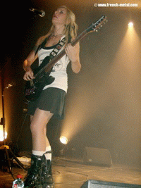 Le temps de sortir quelques minutes pour boire une bière et prendre l‘air (c’est qu’il fait chaud dans cette salle !!), le groupe suivant a déjà commencé lorsque je reviens. Je découvre les trois jeunes femmes de RAZ' ROCKETTE sur scène, un groupe que je qualifierais de pop / punk / rock, originaire de la région Isère. Pas vraiment adepte de ce style, je suis tout de même curieuse de voir ce que propose ce groupe entièrement féminin sur scène. Chose plutôt rare que de voir deux nanas sur scène, basse et guitare en main, accompagnées d’une batteuse relativement talentueuse. Leur punk / rock est énergique, Mélanie au chant / guitare et Cassandre à la basse se débrouillent plutôt bien dans la pratique de leurs instruments respectifs, ça envoie, c’est propre, mais leur jeu de scène reste toutefois un peu trop statique, ce qui est fort dommage, un peu plus de pep’s n’aurait pas été de refus. Un EP 4 titres du groupe est déjà disponible, et un album "New Direction", bientôt à paraître.
