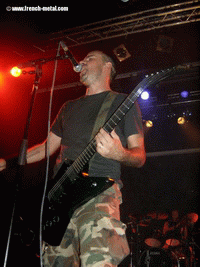 L’avant dernier groupe à jouer est le groupe de death / black / thrash THE OATH, originaire de Lyon. Près d’un mois après leur prestation au Sylak dans l‘Ain, les voilà de retour dans la région sur la scène de la MJC Ô Totem. C’est la troisième fois que je vois ce groupe en live, et je dois dire que je trouve leurs shows de plus en plus énergiques, je trouve que le groupe a gagné en maturité sur scène. Le niveau à la batterie de Kris est très bon, avec un jeu technique et carré, pas grand-chose à dire non plus sur les guitares et basse. Le chant de Pierre s’améliore de live en live, le groupe dégage une belle énergie sur scène et se donne à fond. A noter également, chose relativement rare pour le relever, le claviériste qui intervient au chant par moments, et a l’air de s’éclater sur scène, quittant même son clavier pour s’avancer sur le devant de la scène le temps d’headbanguer quelques instants. Les Lyonnais sont visiblement contents d’être ici ce soir, le public, un peu plus calme qu’auparavant, semble toutefois apprécier. L’heure tourne, le chanteur annonce devoir écourter le show de THE OATH et laisse ainsi la place au dernier groupe à jouer ce soir.