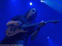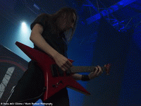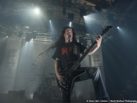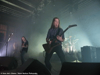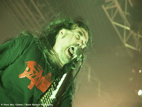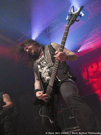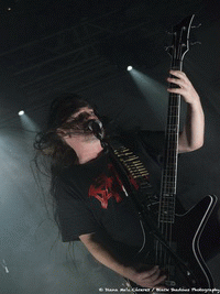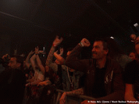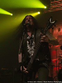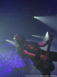 La salle est de plus en plus remplie pour accueillir les Grecs de ROTTING CHRIST. Leur son est très bon et c’est un mélange de plusieurs styles, du black metal mélodique et atmosphérique avec quelques touches de metal gothique. Le public présent semble bien connaître le répertoire de ROTTING CHRIST et les "Hey !, Hey !" que l’on entend confirment que le public est à fond. Les rythmes sont super efficaces et font bouger, même ceux pour qui le style n’est pas leur choix de prédilection. En somme, une prestation sans accroc, avec un groupe qui s’entend à la perfection et qui est musicalement au point, rien de mieux pour cette fin d’après-midi !