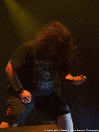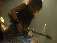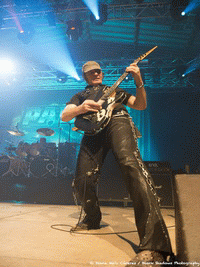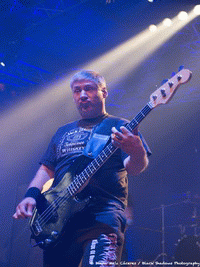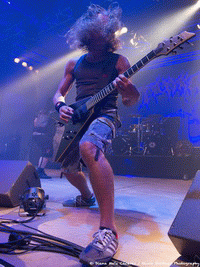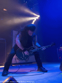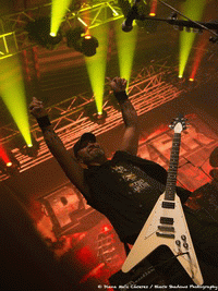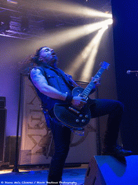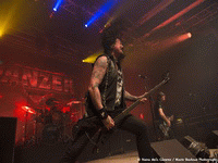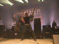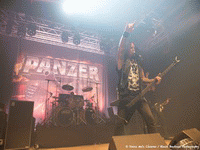 Nous allons maintenant assister à la prestation quelque peu exceptionnelle de PANZER, les Allemands officiant dans le heavy metal avec une touche thrashy sont rares et nous allons donc profiter à fond de leur passage au Gohelle Fest. La salle est à nouveau bien remplie et leur musique super énergique nous remet d’aplomb pour la suite. Le charismatique Schmier au chant et à la basse fait chanter le public et, entre les morceaux, le fait crier "Panzer ! Panzer !". Stefan Schwarzmann à la batterie assure tel un métronome, des rythmes efficaces qui mêlent thrash et heavy metal. De son côté, Herman Frank à la guitare s'amuse avec les photographes et fait des grimaces au public. Il nous offrira aussi le premier solo de guitare de la journée, très apprécié par le public qui l'acclame avec enthousiasme. Le set se finira par un très bon "Temple Of Doom" qui donnera cette sensation de satisfaction au groupe et au public qui acclame ce dernier avec des cris et des applaudissements !