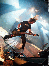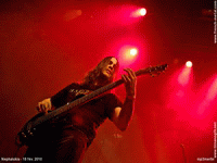 Après les trois groupes locaux, ce sont les Poitevins d’HACRIDE qui s’emparent de la scène pour une des dates de leur "Lazarus Tour". Leur son, tout comme leur charisme, montre dès le début le côté très professionnel et expérimenté du groupe. Les instruments lents et lourds succèdent au riffs plus rapides accompagnés des cris puissants du chanteur. Là encore, les musiciens ne laissent guère le temps aux silences de s’installer : les ambiances sont prenantes, et les chansons s’enchaînent de manière très fluide. Je ne connaissais quasiment pas le groupe sur CD, mais globalement, les musiques sont vraiment bonnes sur scène. Cependant, l’efficacité du set est parfois un peu courtcircuitée par des breaks de batterie un peu trop techniques, et les deux / trois solos de gratte nuisent légèrement à la consistance des morceaux. Au final, HACRIDE a présenté un très bon concert, avec un son globalement assez original, et vu la notoriété du groupe, ainsi que les premières parties qui étaient très sympa, je trouve ça étonnant et dommage qu’il n’y ait pas eu énormément d'entrées ce soir-là, au Bikini.
