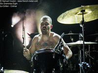 SIX GRAMMES EIGHT ouvre le bal : un show avec deux chants, c'est de la grosse basse, ça pousse, ça appelle la foule à venir faire du circle pit et des petits pas de danse devant. Quelques coups de semonce à coup de breakdowns bien ajustés et quelques vociférations à base d'insultes en français (dans le texte) tentent de faire monter la température de la salle : ça marche, jusqu'à ce que le drame arrive : pétage de la grosse caisse. Le groupe ne se laisse pas démonter et balance 3 titres avec une grosse caisse retournée : à l'ancienne. Les épaules sont chauffées, les côtes aussi, le public est maintenant prêt pour HATEBREED.