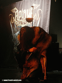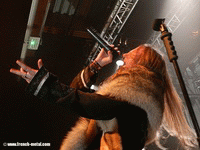 La soirée arrive déjà bientôt à sa fin, le temps pour le groupe tête d’affiche d’installer la scène et faire quelques balances, il est 23h30 lorsque ARKONA entre enfin en scène. Et pendant un set d’un peu plus d’une heure, les Russes vont mettre un peu plus l’ambiance pour achever cette soirée en beauté. Sur scène, deux backdrops d’ARKONA sont disposés d’un côté et de l’autre de la scène, avec deux espèces de torches enflammées installées de chaque côté de ceux-ci. Leur pagan / folk metal est beaucoup plus violent que les précédents groupes, dans la continuité de DALRIADA qui les précédait ce soir. Masha Scream au chant alterne à la fois un chant clair et growlé, la jeune femme, vêtue de son habituelle peau de bête sur le dos, a une énergie débordante, elle ne tient pas en place, saute, court, hurle, fait participer le public avec elle, c’en est impressionnant de voir un petit bout de femme aussi énergique. La musique de ARKONA est puissante, festive, brutale, entraînante, tout cela à la fois, le public est plus qu’emballé et se déchaîne enfin, entre pogos et walls of death, l’ambiance est plus qu’au rendez vous. Parmi la setlist, on retrouve des morceaux piochés un peu partout dans leur discographie, de "Kupala I Kostroma" et "Slav’sja, Rus !" extraits de l‘album "Ot Serdtsa K Nebu" sorti en 2007, à "Goi, Rode, Goi" tiré de l‘album éponyme sorti en 2009, en passant par "Az" et "Arkaim" extraits de leur dernier album "Slovo" sorti en 2011. Le son est parfait une fois de plus (comme il le fut tout au long de la soirée d’ailleurs), la présence scénique de Masha et de Sergei Lazar à la guitare notamment est très bonne, aucun temps mort au cours du set, les titres s’enchaînent à une vitesse impressionnante, ARKONA fait vraiment partie de ces groupes qui savent mettre l’ambiance sur scène et dans le public, à voir au moins une fois dans sa vie pour les fans. Le concert s’achève sur le coup des 00h35.