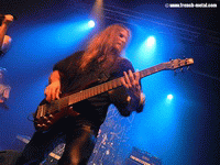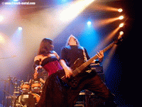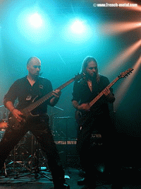 La soirée passe à vive allure, déjà le quatrième groupe à se produire désormais. ASYLUM PYRE est un groupe de metal mélodique mêlant habilement des styles aussi variés que le heavy, le metal progressif, le speed metal ou encore le metal lyrique. La salle bénéficiant d’une très bonne acoustique, le son est très bon ce soir, les effets de lumières sont qui plus est de plus en plus élaborés et le visuel scénique est très agréable. Un certain professionnalisme et une expérience certaine se dégage du groupe, le set est propre et carré, la technicité de ses membres est bonne, et le niveau à la basse ou aux guitares, ainsi qu’à la batterie est là. Chaos Heidi, au chant, maîtrise parfaitement les différentes techniques de chant et au niveau de sa voix, alternant un chant plutôt « rock » aux sonorités graves passant vers des tonalités plus mélodiques voire un chant lyrique par moments. Celui-ci s’associe avec l’intervention de Johan (guitare) au chant masculin sur certains passages. La jeune femme dégage une forte présence scénique, qui montre une certaine aisance et expérience de la scène. Le groupe verra par ailleurs apparaître les premiers pogos de la soirée. Ne connaissant ASYLUM PYRE que de nom, j’ai découvert ce soir un groupe dynamique à la fois puissant et plein d’énergie, dont le set fut plus qu’agréable, à surveiller de près. D’ailleurs, pour les fans du groupe, après un premier album ("Natural Instinct") sorti en 2009, la sortie du deuxième, "Five Years Later", est prévue pour Novembre.