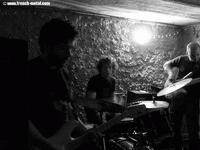 Ayant mal estimé le temps de trajet en métro et m'etant perdu dans Bagnolet avant de trouver le bar, j'arrive au Pixi avec une demi heure de retard pour chroniquer la soirée. Je rentre dans le bar, et rien ne laisse deviner qu'un concert a lieu dans la cave. En descendant, mon attention se porte immédiatement sur les mauvaises conditions pour faire un concert : une toute petite salle sans scène, très mauvais éclairage (merci pour les photos...) et à peu près autant de place pour le petit public que pour les groupes. Cependant le materiel est au rendez-vous, et entre amplis Mesa Boogie et Orange, avec une batterie bien réglée, CARNE joue statiquement un de ses titres.