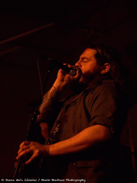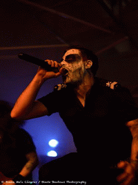 C'est l'un des derniers venus chez Kaotoxin, AZZIARD, qui monte sur scène. C'est un groupe de black / death metal qui a pour particularité d'avoir comme thème la Première Guerre Mondiale. L'ambiance créée par le groupe sur scène reflète cette volonté de nous plonger dans un monde sombre, très noir et inquiétant. Leur musique est maîtrisée et l'interprétation de A.S.A. au chant, donne une puissance particulière à leur prestation. Le public, qui commence à être bien nombreux, semble conquis et suit les rythmes de la tête. Tout comme pour leurs prédécesseurs, les titres s’enchaînent à la perfection et nous laissent à peine reprendre notre souffle. Si vous êtes adeptes des ambiances sombres et du black metal, alors vous pouvez jeter une oreille attentive aux deux albums, "1916" (2009) et "Vésanie" (2014). Le groupe quittera la scène sous les applaudissements nourris du public.
