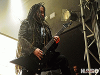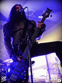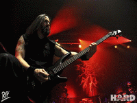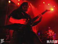 Je suis donc arrivé au quatrième titre, "Pyramid God", un hymne à ne pas manquer au même titre que "Prototype" et "Order Of Dracul" (par contre celui-là, je l’ai raté de peu). Le morceau est parfaitement reproduit mais pour que le concert eût été plus frappant, j’aurais aimé que la musique soit un peu plus forte, et que les sons en arrière-plan puissent mieux ressortir également. Ces derniers temps, je trouvais les concerts trop forts (suis-je un éternel râleur ?) mais pour ce groupe, il y avait au contraire besoin de plus de puissance, un son plus fort et un réel détachement entre les musiciens et la musique d’arrière-plan, et là ça aurait été parfait. Spiros Antoniou (je trouve qu’il a un petit air de Dédo...), le chanteur / bassiste, arrangue souvent la foule tout en nous considérant comme ses amis, attention à ne pas trop s’adresser au public durant les morceaux non plus. Spiros n’aura qu’à dire "ancient codes from Egypt" après "The Vampire From Nazareth" pour qu’on sache de suite que l’on va voyager à nouveau avec "Anubis" et là, le public chante avec ferveur des "ohohohoho ohohoh" sur le magnifique refrain. Après seulement 8 titres, dont la moitié de leur album "Titan", arrive la fin sans rappel possible malgré la tentative du public. Le groupe était très attendu et a su combler le public par sa prestation et un son assez propre.