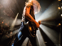 Et quelle musique ! L.A. GUNS enchaîne avec le mystique "Over The Edge", morceau que j’affectionne particulièrement et très bien repris ce soir. L’ambiance est à la hauteur de la qualité scénique, nous sommes tous exaltés et les plus connaisseurs d’entre nous chantent avec véhémence tous ces morceaux indémodables, auxquels vient s’ajouter "Sex Action" qui déchaîne les foules comme jamais. Une perle de glam metal enflammé et terriblement accrocheur, faisant ainsi la balance parfaite avec "The Flood’s The Fault Of The Rain", la superbe balade de "The Missing Peace" - une cousine éloignée de "Don’t Cry" des Guns N’ Roses - que j’espérais vivement entendre ce soir. Pour mon plus grand bonheur, le groupe enchaîne sur "Speed", morceau survolté au refrain ultra catchy et dont l’effet sur le public est plutôt réussi.