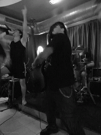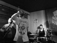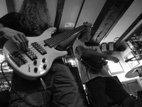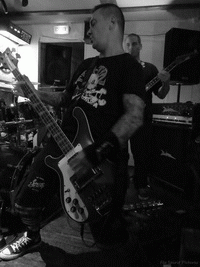 C’est une horde de métalleux qui se dirigeait vers le Diver, 200 mètres plus loin. Il est 22h, ça discute devant le bar, à l’intérieur ça crie et entre les deux, les gens font des chaînes de bières à cause de la difficulté à se mouvoir à l’intérieur. Malheureusement, la capacité d’accueil du lieu étant trop faible, il y a 70 personnes dedans et 450 dehors ! PROHIBÉ s’accommodera fort bien de cet espace réduit pour servir son "rock metal français" dynamique ! La prestation aussi a l’air mouvementée mais de là où je suis je ne fais que le deviner, dommage. Le trio a ravi les chanceux à l’intérieur mais aussi les autres à l’extérieur qui savourent leur cervoise en écoutant la musique qui s’entend largement de la rue.