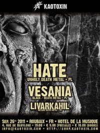 Des sons lourds, une batterie qui enchaîne sec , LIVARKAHIL est un réel plaisir à nos oreilles à l’image de "The End Of Everything" qui te met une claque monumentale, un jeu plus que correct une très bonne technique, une présence sur scène très agréable, je ne regrette pas d’être resté bien au contraire, j’en oublierais presque les frasques de HATE et VESANIA... j’ai bien dit presque car bon les allers-retours très peu discrets devant la scène pendant que les LIVARKAHIL jouent, j’ai trouvé ça plus que moyen et totalement irrespectueux.
