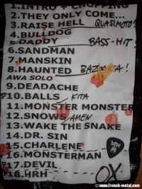 Le concert ne durera pas très longtemps, je dirais 45 minutes à peu près où on a pu entendre quelques chansons de leur dernier album : "Date U 2 Rape U", "The Kreel Biz Inc.", "Superfucker666", "Last But Not The Least", "Rock’n’Roll Suicide"…