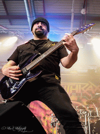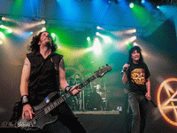 Place maintenant à ceux qui auraient dû être la tête d’affiche de ce festival, les doyens d’ANTHRAX… Doyens peut-être, mais les bougres savent tenir une scène. Tout au long du set, ça saute dans tous les sens, ça headbangue, ça bouge, le tout dans une bonne humeur communicative. Le groupe est pro jusqu’au bout des cheveux (‘fin de la barbe pour Mister Scott Ian) mais ne se prend pas la tête une seule seconde. Question musique, leur thrash typique fait mouche à tous coups et puisqu’il est question de cou, ils ont balancé des rythmique à se le rompre, le cou (Ah ah...). Quoi qu’il en soit, un bien bon moment en compagnie d’un groupe trop rare par chez nous.