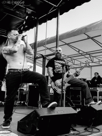 Arrêt au stand pour s’humecter la glotte et profiter de l’accueil tout particulier de Larry, Milie et Mika de la Chimère et NOISE EMISSION CONTROL investit la scène… Grands gagnants de la finale du tremplin, les gaillards avaient su convaincre le jury et le public. Et ils ont su se montrer à la hauteur une fois de plus. Leur crossover punk-thrash-stoner développe une énergie rarement atteinte dans le genre et le premier morceau n’est pas encore terminé que leur vocaliste tombe déjà la liquette. Carré, groovy et à l’enthousiasme communicatif, avec NEC, c’est l’assurance d’une surboum réussie.