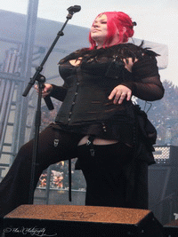 Dur de prendre la suite, et ce challenge incombe à SARAH JEZABEL DEVA… L’ancienne choriste de Cradle Of Filth a pris son envol en solo et même si elle bénéficie d’une certaine popularité dans le milieu du metal à chanteuse, elle ne partait pas gagnante sur cette affiche. Et cela s’est ressenti, tant sur scène que dans le public qui regarde curieusement et de loin le set des Anglais. De là à dire que le porte-jarretelles de la demoiselle y est pour quelque chose, il y a un fossé que je me garderai de franchir. L’impression que Sarah demeure choriste dans son propre groupe et la mollesse générale de ce set ont eu raison de ma motivation. Dommage.