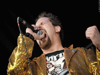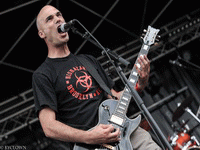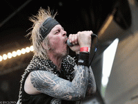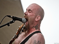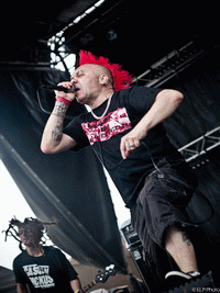 Leur album de 1981 avait peut-être raison puisque les voilà devant nous pour un set incroyablement énergique, plus déterminés que jamais à embraser Saint-Nolff ! Wattie Buchan derrière ses faux airs d’Olivier Baroux et sa crête de 20cm d’un rouge flamboyant nous arrive sautillant et plein de hargne, tellement énergique qu’il se frappera la tête avec son micro à plusieurs reprises, tel un boxeur étourdi, grisé par le combat... Joe Stummer (The Clash) l’avait dit: "(...)Le punk t’obligeait à oublier une bonne partie de tes acquis." (1976) Eh bien l’exemple de THE EXPLOITED ne pouvait pas mieux tomber, moi qui ne suis au demeurant pas fan de punk, crust et autre oi!, je me suis laissé surprendre par le côté thrashy de certaines de leurs lignes comme sur "Holiday In The Sun" ou "Beat The Bastards" contrastant sensiblement avec d’autres comme "Dogs Of War" pour finir par se retrouver sous la même bannière crêteuse tendue par leur premier morceau culte (enfin, pour ceux qui connaissent cette douce odeur de tabac froid et de bière tiède des pubs écossais 80’s) : "Fuck The USA". Il faudra aussi retenir la débauche d'énergie du bassiste : Irish Rob ! Un véritable sourire ambulant, ondulant ses dreads dans la bruine morbihanaise ! Une belle prestation rajoutant un peu de couleur sur la grise toile du ciel breton...