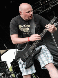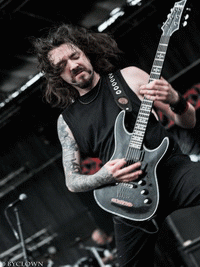 Après l’interlude gentillet des UNCO, retour aux affaires sérieuses avec GOROD. Qu’il est bon de revoir les Bordelais et leur death metal ultra technique un an après leur prestation remarquée au Hellfest ! Au programme : doigts qui vont vite, concours de grimaces et de posing entre les musiciens et growl monstrueux. Pas de doute, le death français a de beaux jours devant lui avec des groupes de ce calibre (Gojira, Benighted, Outcast aussi par exemple) ! Comme pour ABORTED et HACRIDE, on reprend une dose de claques, de technique, de gros son et de jeu de scène. C’est sous le soleil harassant de l’après midi (17h00) que le pit se met à sérieusement bouger pour une petite leçon de brutalité contrôlée. Aucun doute n’est possible en ce qui concerne le plaisir du public (headbanging de masse et gens scotchés sur la crash barrière) et celui des musiciens qui rivalisent d’ingéniosité pour les tenir en haleine (ou qui rivalise de sourires en ce qui concerne le grand Barby, le bassiste super barbu à mâchoire de requin du quintette). Sans oublier Mathieu le gratteux, qui en a époustouflé plus d'un, par son jeu et sa technique incroyable. Il faut effectivement le reconnaître, ce ne sont pas des zicos sortis de nulle part. Ce sont des bons, des excellents même !