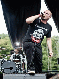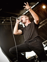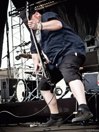 Les JUNGLE ROT sont entrés en scène. La fosse commençait petit à petit à se remplir. L'ambiance absolue n'était encore guère présente puisque ce n'était que le début de la journée. Mais pourtant, cela n'a pas empêché de créer des nuages de poussière, dans la fosse. Parce que même si la musique de JUNGLE ROT a des airs de déjà vu, même s'ils n'inventent rien de nouveau, leur musique plaît. Elle plaît, parce que c'est un style qui passe partout. Ni violent, ni trop calme, ce genre nous transporte. On suit le rythme, on ne se lasse pas d'écouter, et on se laisse prendre au jeu. Et les nuages de poussière dont je parlais précédemment, ne font que le confirmer. Effectivement, dans le public il y avait du mouvements. Les mecs motivés fonçaient dans le tas et s'adonner à des mini-parcours circulaires : des circle pits ! Même un des membres du groupe suivant, au lieu de s'échauffer, se mater le concert, une bière à la main. Comme quoi, leur musique n'a pas fait qu'attirer le public qui se faisait de plus en plus nombreux ! Puis le chanteur ressemblait à un chanteur de black metal. Le bassiste lui, me faisait légèrement penser au chanteur du groupe Fall Out Boy, dans son style. Bref, le combo était esthétiquement, pas désagréable. Ils furent même adorables au moment où ils ont su faire participer (enfin gueuler) le public, à la fin d'une chanson, en les faisant crier "Hey" à répétition. C'est sûr, l'ambiance commence à monter et vu l'affiche qui suit, cette journée s'annonce enrichissante !