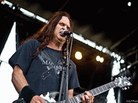 Le temps des crêteux est bel est bien imparti et la place est désormais faite aux chevelus et à ANNIHILATOR sur la Dave Mustage ! Le thrash carré canadien précédé par sa grande réputation et sa longue et prolifique carrière monte sur ce grand espace orné pour l’occasion d’imposants murs d’amplis. Les effets de lumière vont au plus simple, sans fioriture d’aucune sorte, nous laissant pleinement apprécier les compositions qui nous sont assénées avec maîtrise et vigueur : rapides, directes, franches et lourdes, après tout il s’agit bien de LA tête d’affiche de ce fest’ ! Ce sera une véritable découverte (et quelle découverte !) le groupe entrant dans sa 30ème année déroulera minutieusement son set tout en nous présentant, non sans succès ce qui sera leur prochain album : "Feast", avec notamment "No Way Out"... Un son parmi les plus propres de tout le festival nous fera admirer les indéniables qualités de frontman de Jeff Waters comme sur le morceau suivant : "Clown Parade" aux plus que prenants choeurs et unissons des refrains / ponts ! De quoi secouer vigoureusement la tête, en vociférant, pied sur le retour, bras tendu, de grands "Oi!". Pas évident pour les Nord-Américains de sélectionner des titres dans leur ô combien riche musette, mais des morceaux comme "Ultra-Motion", "Set The World On Fire" suivront activement cette superbe première partie avant d’être rejoints par "Fiasco", "I Am In Command" puis, l’incroyable "Alison Hell" parachevant cette démonstration de maturité technique et scénique devant un public fasciné n’osant trop bouger !