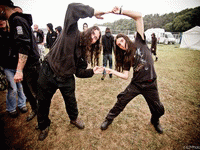 La masse de spectateurs venue prendre une jolie leçon de live avec ANNIHILATOR (la plaine était pour l’occasion remplie au delà de la régie !) voit maintenant sa population considérablement réduite et le dernier groupe s’avancer avec ROTTEN SOUND qui, comme son nom l’indique, nous enverra un son saturé, rouillé et terriblement violent pour fêter ses 20 bougies... Il faudra effectivement être amateur de gros blast beats et de chants brutalement gutturaux pour apprécier cette fracassante clôture du Samedi et se laisser aller à quelques pogos. Ce ne sera à première vue, malgré quelques rares passages plus orientés death que grind brut de décoffrage, pas un succès retentissant pour la formation à laquelle le public aura plus tendance à préférer le camping et la compagnie d’une tente ou d’un charmant verre de whisky entre "voisins" à la Supositor... C’est sur cette note profonde de par son agressivité mais plutôt mal choisie pour compléter la soirée, que va s’achever cette seconde journée de festival. C’est maintenant sur le camping que le plus clair de l’action va se dérouler, des scènes de ménage, des apéros, des éclats de voix, de rires, des chansons payardos-médiévales et encore des apéros après une rude journée ponctuée de rencontres avec, au choix, Papy Metal ou Alien autour du Metal Market et surtout d’interminables parties de volley à 40 entre parking et camping, bières en main !!! Le public perclus de courbatures aura certainement en tête de bien belles prestations comme celles d’HACRIDE ou GOROD mais surtout celles d’ORPHANED LAND et d’ANNIHILATOR ainsi que des efforts fournis par les régies pour contribuer tout en son et en lumière au bon déroulement des hostilités, aucun accroc notoire ne sera à déplorer si ce n’est le triste célèbre temps d’Ouest venu s’inviter aujourd’hui !...