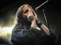 Et c’est justement en parlant de couleur que la tonalité va radicalement changer, car voilà les orientaux d’ORPHANED LAND, le groupe qui fait lui aussi partie de ceux dont la présence sur l’édition de cette année me passionnait monte finalement sur scène ! Il est 22h passées et la météo bretonne n’épargnera pas le groupe le plus ensoleillé de la journée dont le dernier opus : "All Is One" nous est arrivé en début d’été. Nous ne formons plus qu’un face à ce déluge musical piochant de la façon la plus inspirée qui soit dans les univers doom, death, prog et surtout dans le folklore oriental ainsi que les références bibliques ! Leur titre d’ouverture, "Barakah" fend la fine pluie serrée qui continue d’humidifier l’ambiance du Moto’. Choix judicieux qui leur portera chance tout le long de leur set puisque c’est un parterre des plus captivés que nous aurons la chance d’observer entre instants célestes et montées en puissance pleines de vie et d’intensité. S’enchaînera après ça une véritable sanctification de la scène avec des titres de "Mabool" (leur 3ème album) faisant écho aux plus anciennes traditions venues de ce soleil oriental dont ORPHANED LAND tend à se faire le messager : "The Kiss of Babylon (The Sins)" et "Birth Of The Three (The Unification)", un déferlement de riffs profonds, lourds et puissants soutenant une voix claire divinement posée, yeux fermés par un Kobi Farhi se laissant vite gagner par l’espace et l’écoute qui lui sont offerts !... La scène bis va revêtir pour l’occasion de charmantes couleurs allant du jaune au vert en passant par le turquoise et quelques nuances de bleu, soulignant profondément le coté rêveur du spectacle qui se déroule en ce début de soirée. Spectacle au coeur duquel on pourra d’ailleurs bien habilement constater la présence de 2 forces vives sur scène, entre Kobi et sa voix progressive parfaitement maîtrisée d’un côté et de l’autre un Yossi Sassi débordant d’énergie, passant de l’acoustique à l’électrique avec son (sa ?!) superbe Bouzoukitara ! Le pont ainsi créé est ensuite consolidé par une volée de titres issus de leur petit dernier avec "All Is One", "The Simple Man" et plus tard, "Our Own Messiah", titre après lequel le public légèrement transi retrouvera un peu d’énergie avec la montée sur scène d’une danseuse du ventre libanaise qui finira de nous charmer sur "Norra El Norra" puis, pour finir en beauté, "Ornaments Of Gold"... Rythmé, sincère mais surtout envoûtant, sont les mots qui me viennent à l’esprit en repensant à cette bien belle prestation colorée et chaleureuse du quintette israélien.